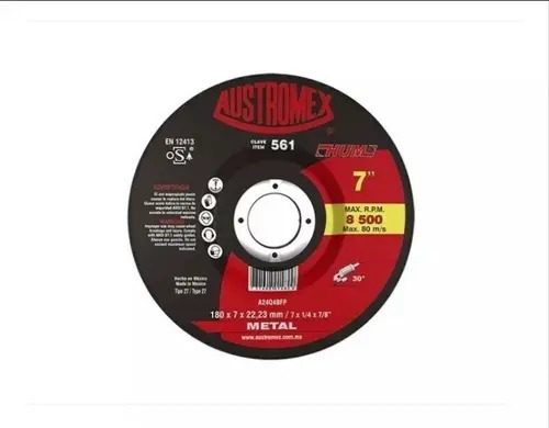 Volver a la TiendaEl Disco de Desbaste de 7 Pulgadas Metal Austromex 561 es la herramienta ideal para quienes buscan eficiencia y durabilidad en sus trabajos de metal. Con un diámetro de 180 mm y un espesor de 7 mm, este disco está diseñado para ofrecer un rendimiento óptimo en diversas aplicaciones, incluyendo metal, fundición y soldadura.